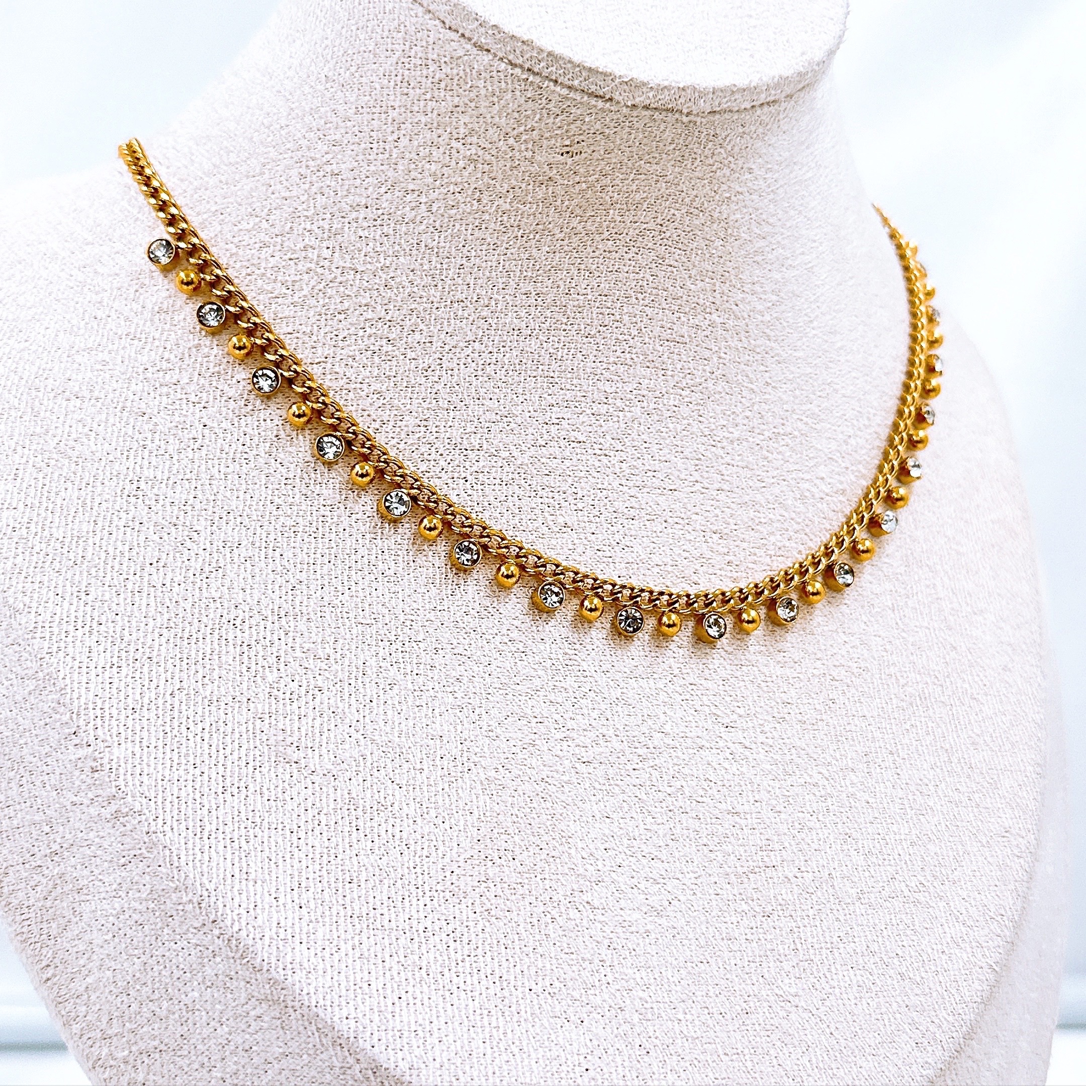 Collar pequeño sencillo con brillitos colgantes.