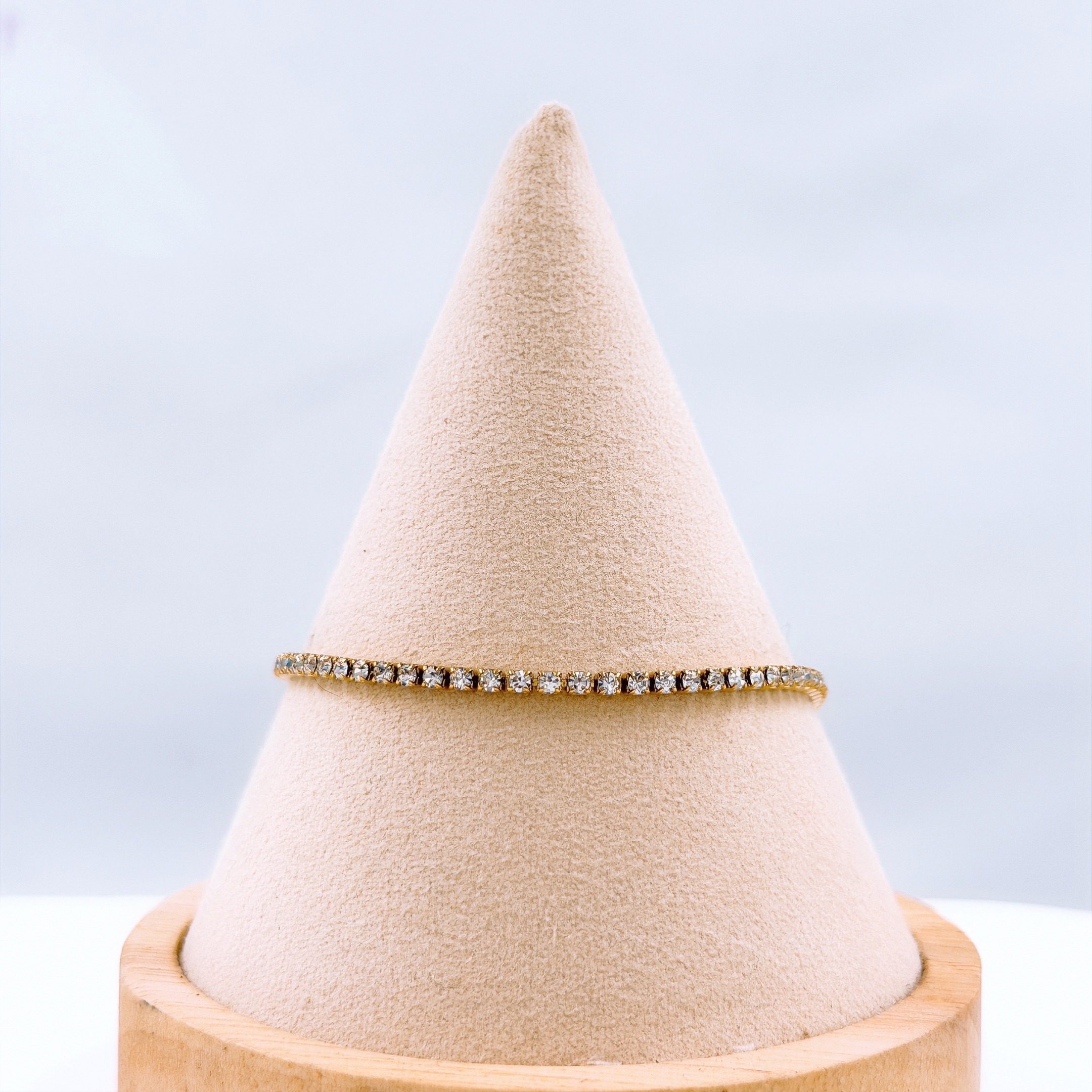 Pulsera dorada con brillos delgada.