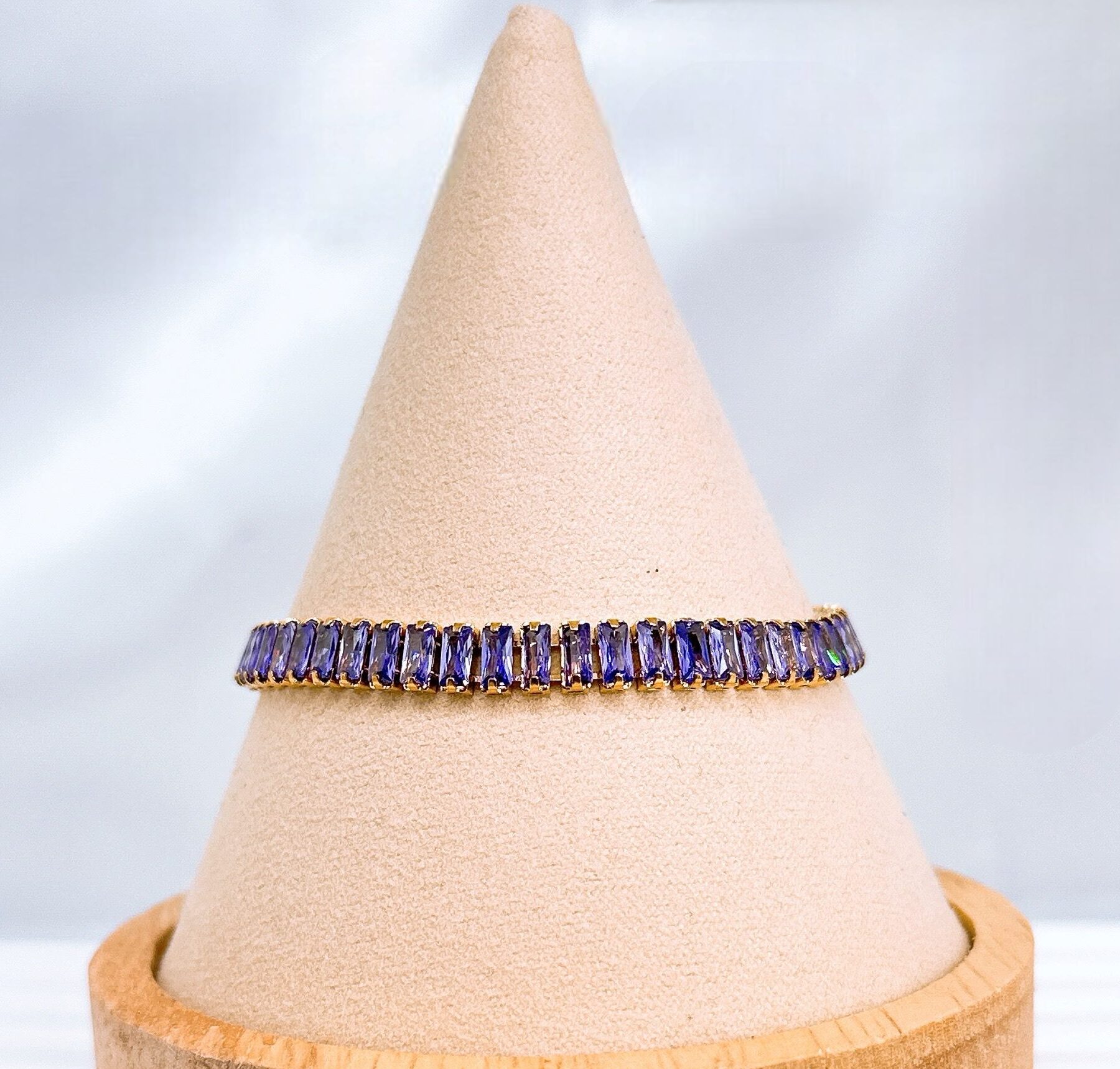 Pulsera en chapa de oro con incrustaciones de piedra sintética color purpura