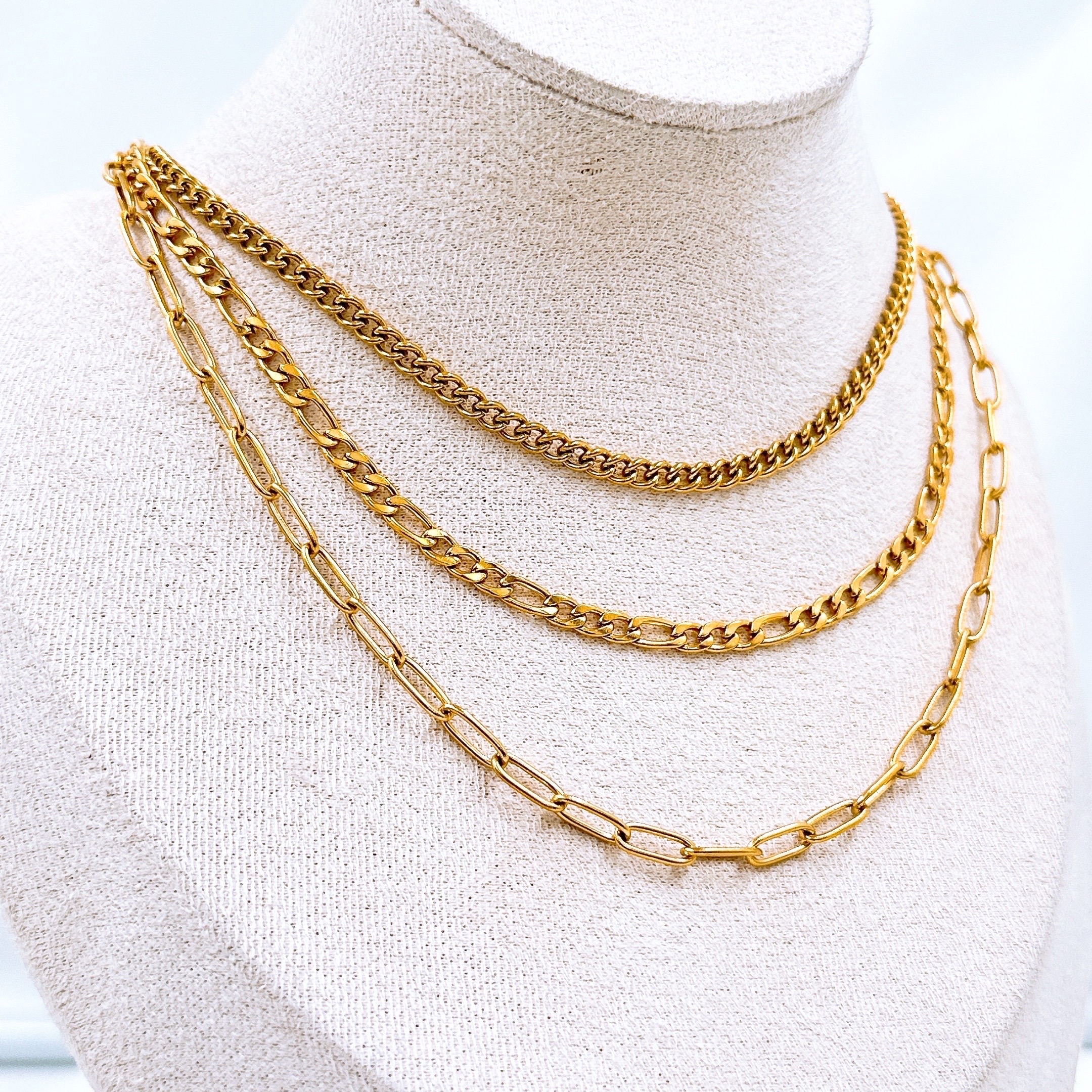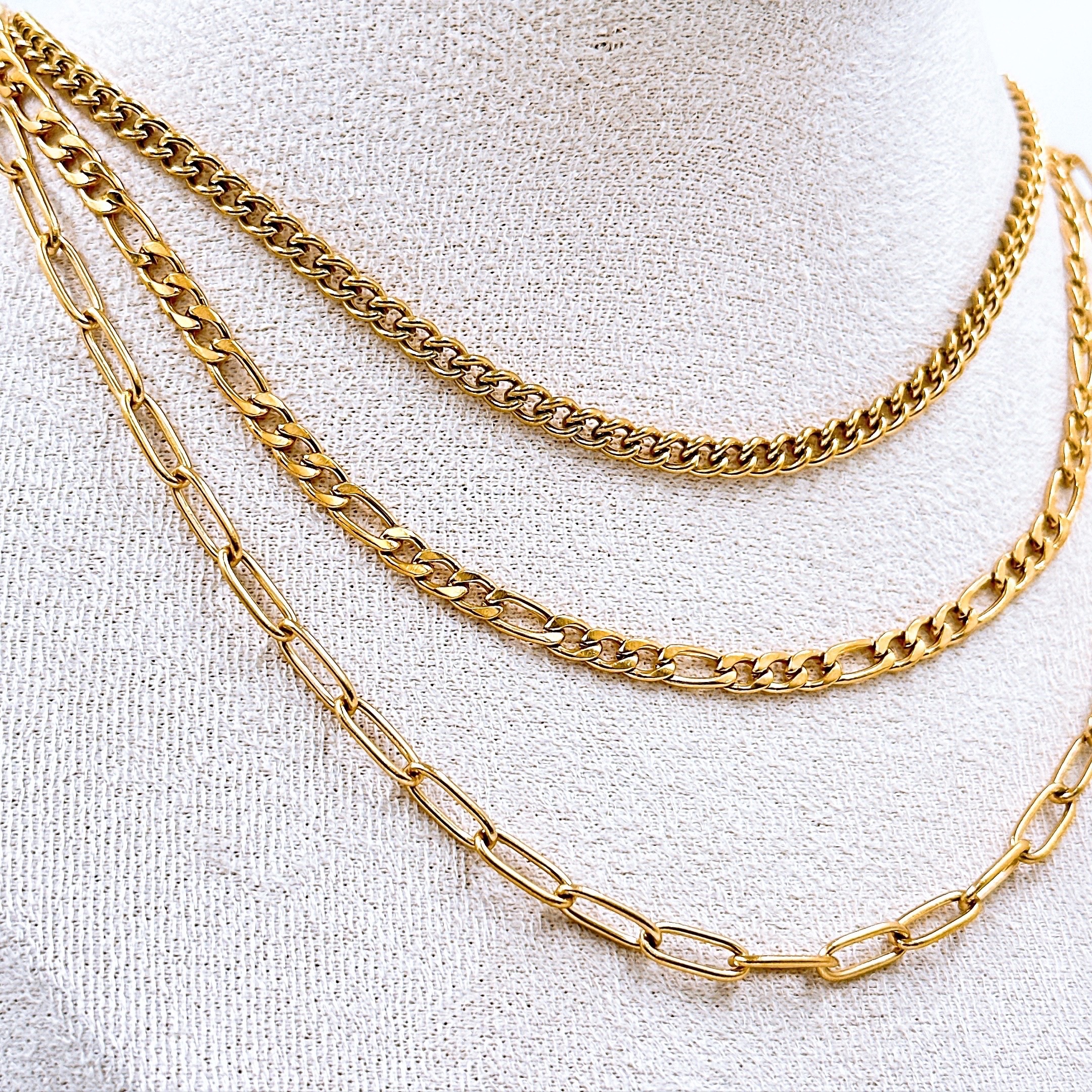 Collar de triple cadenas, de diferentes tamaños.